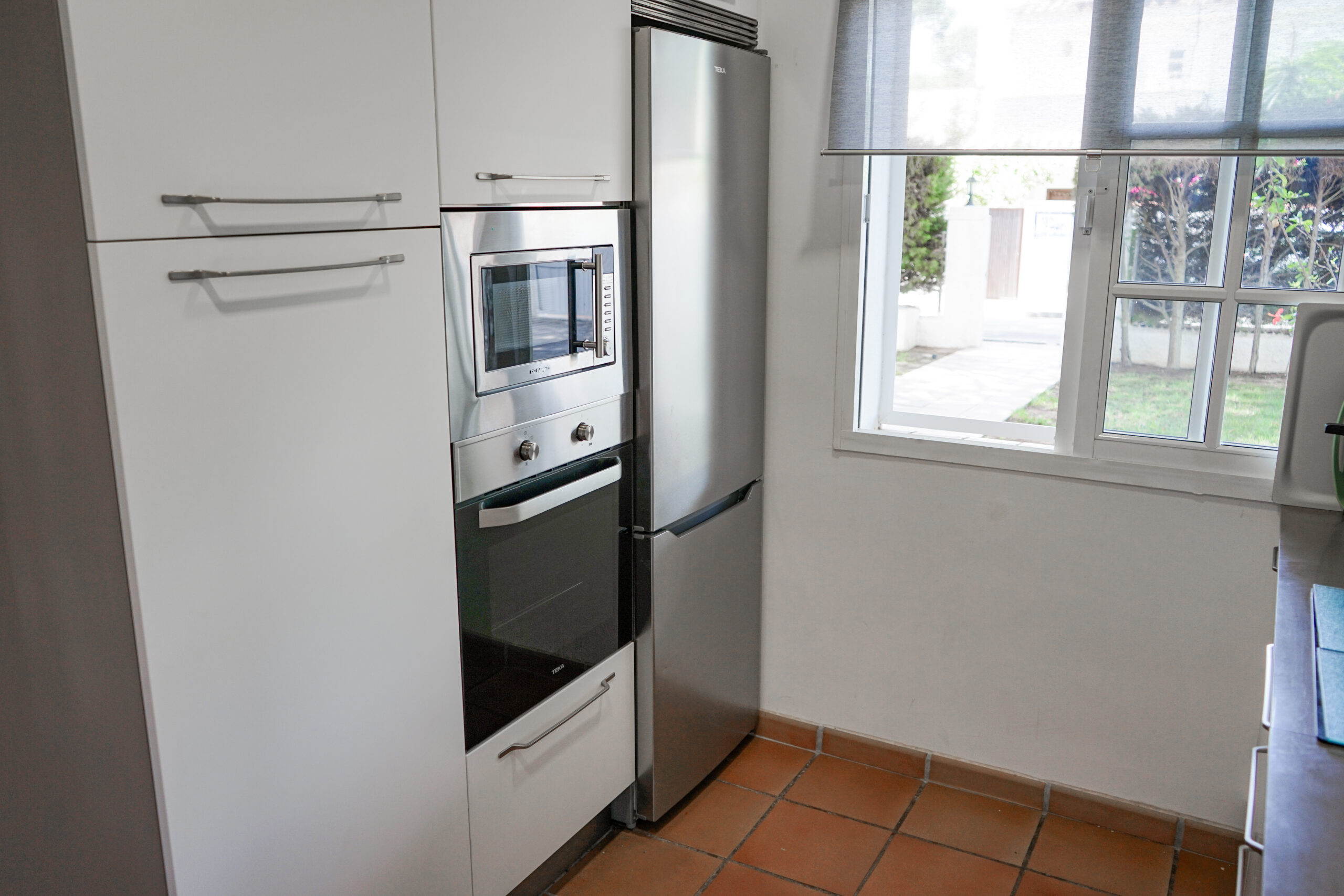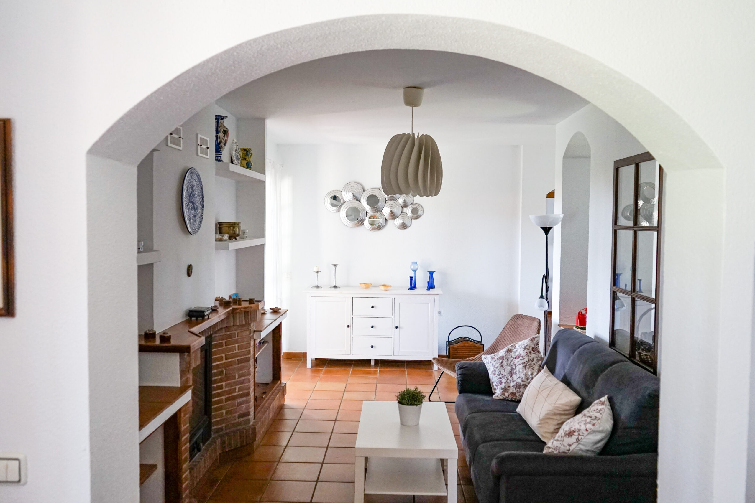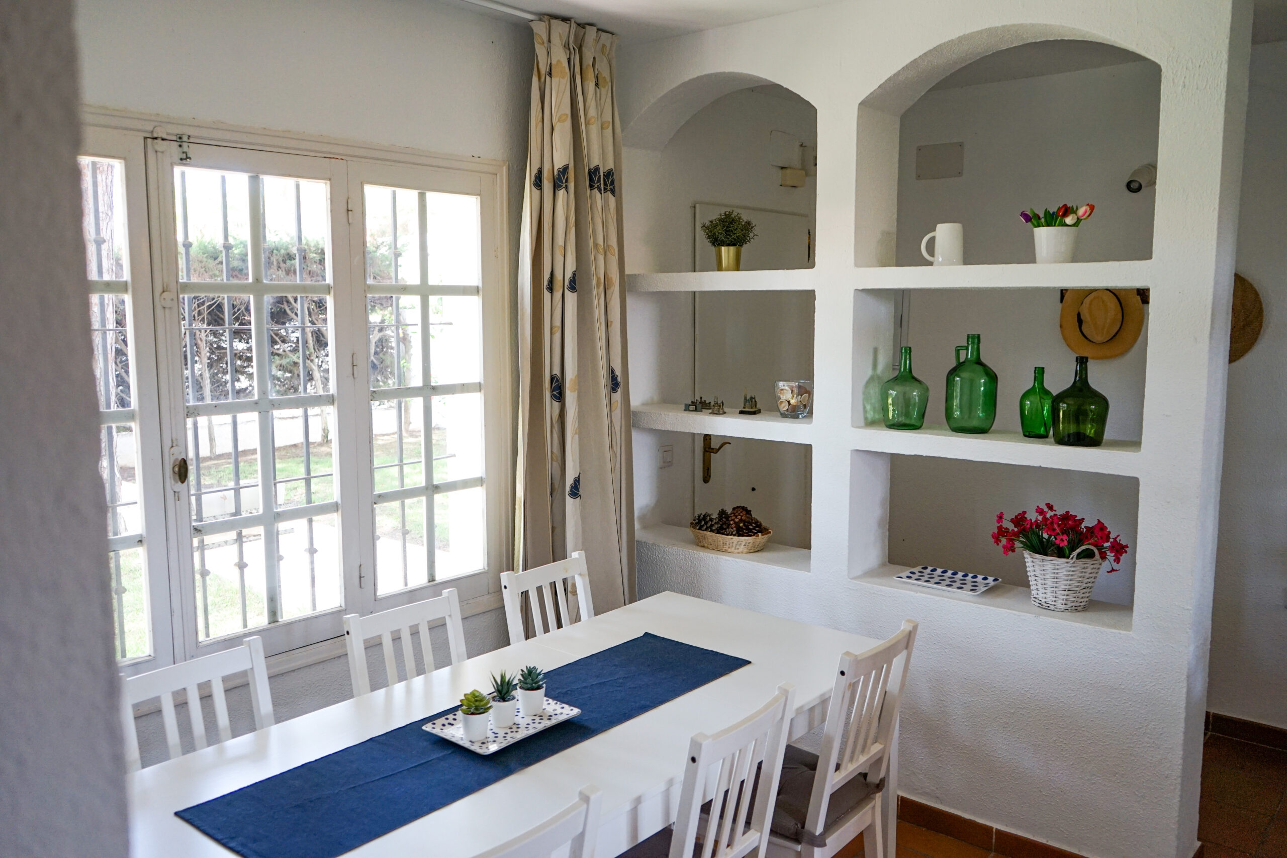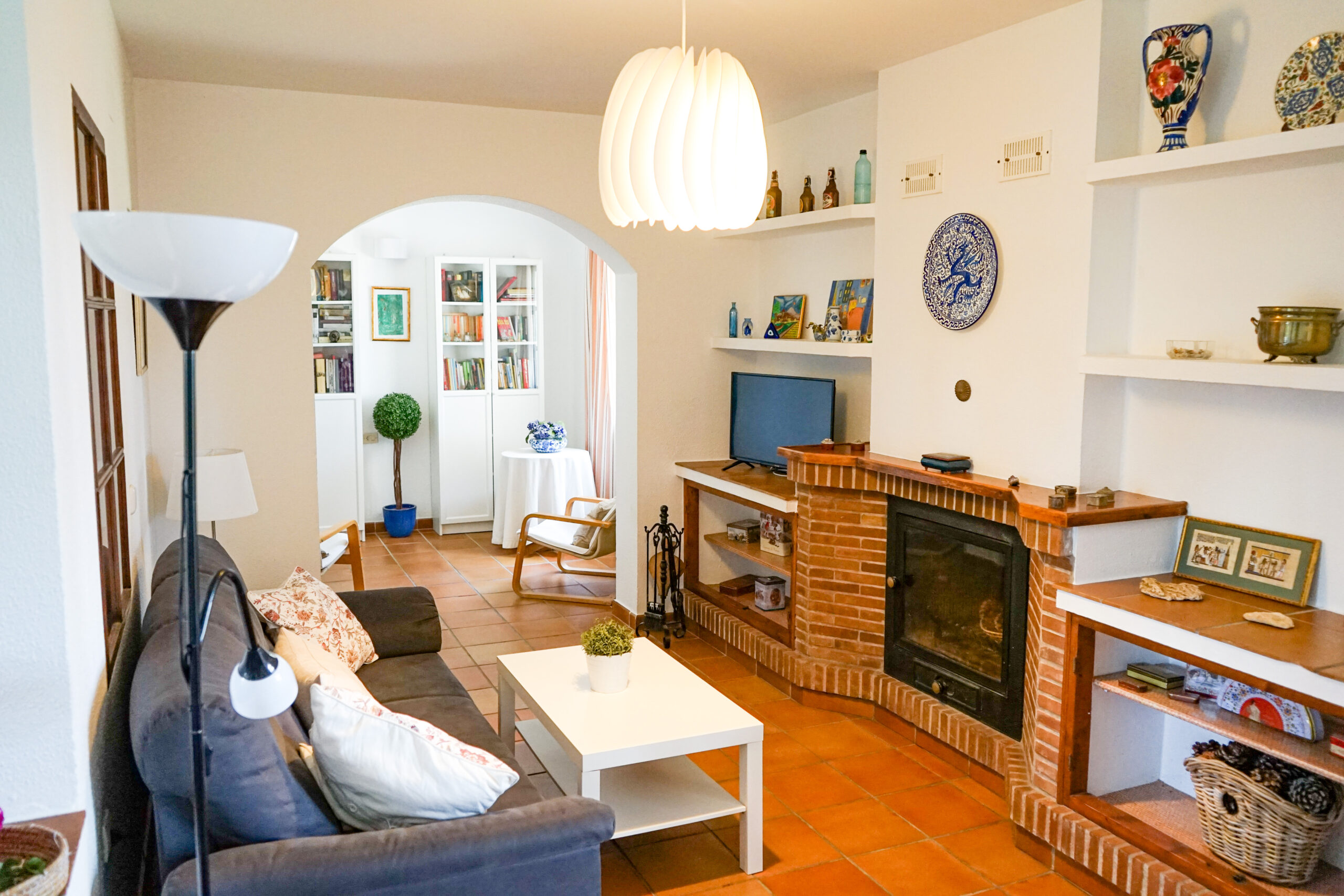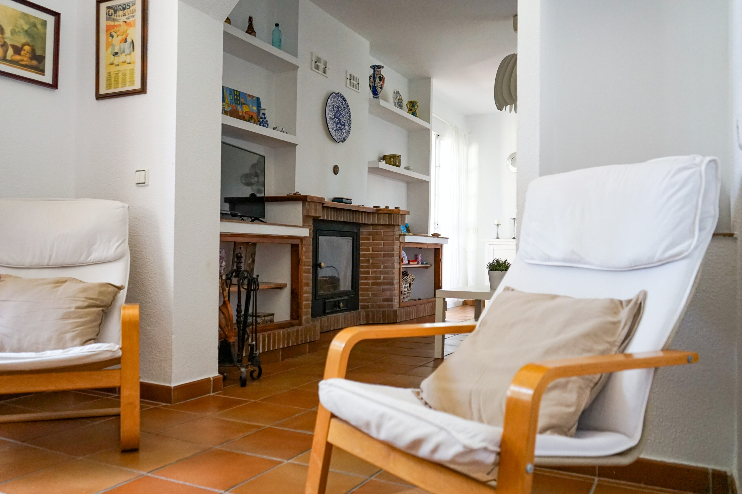 La villa está bien equipada con cocina completa, menaje, sábanas y toallas dobles. Los 3 baños (2 en la planta baja, 1 en la alta) son completos. El salón comedor tiene chimenea de madera y acceso al porche amueblado con sillas de mimbre. El jardín cuenta con piscina y cómodas hamacas. Wifi disponible.