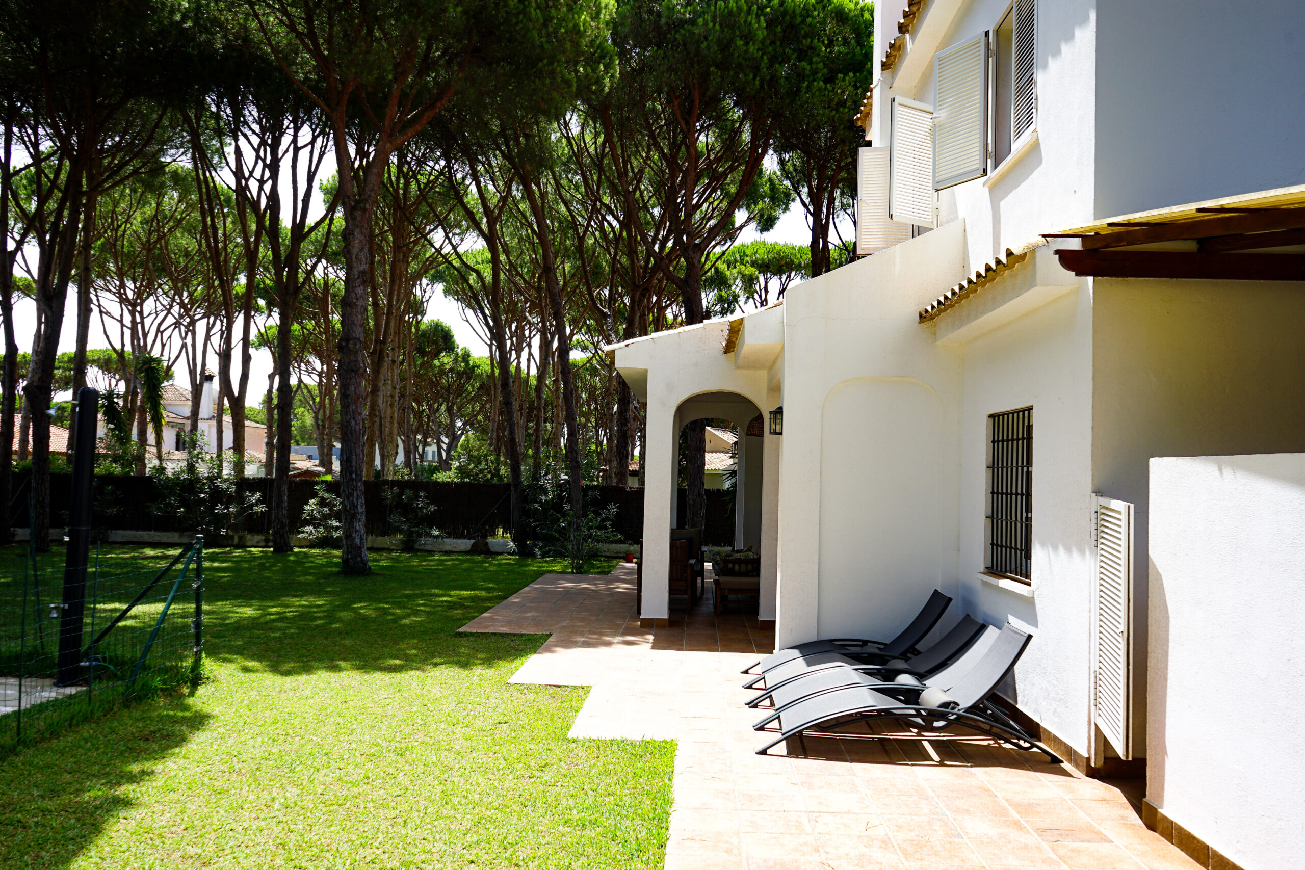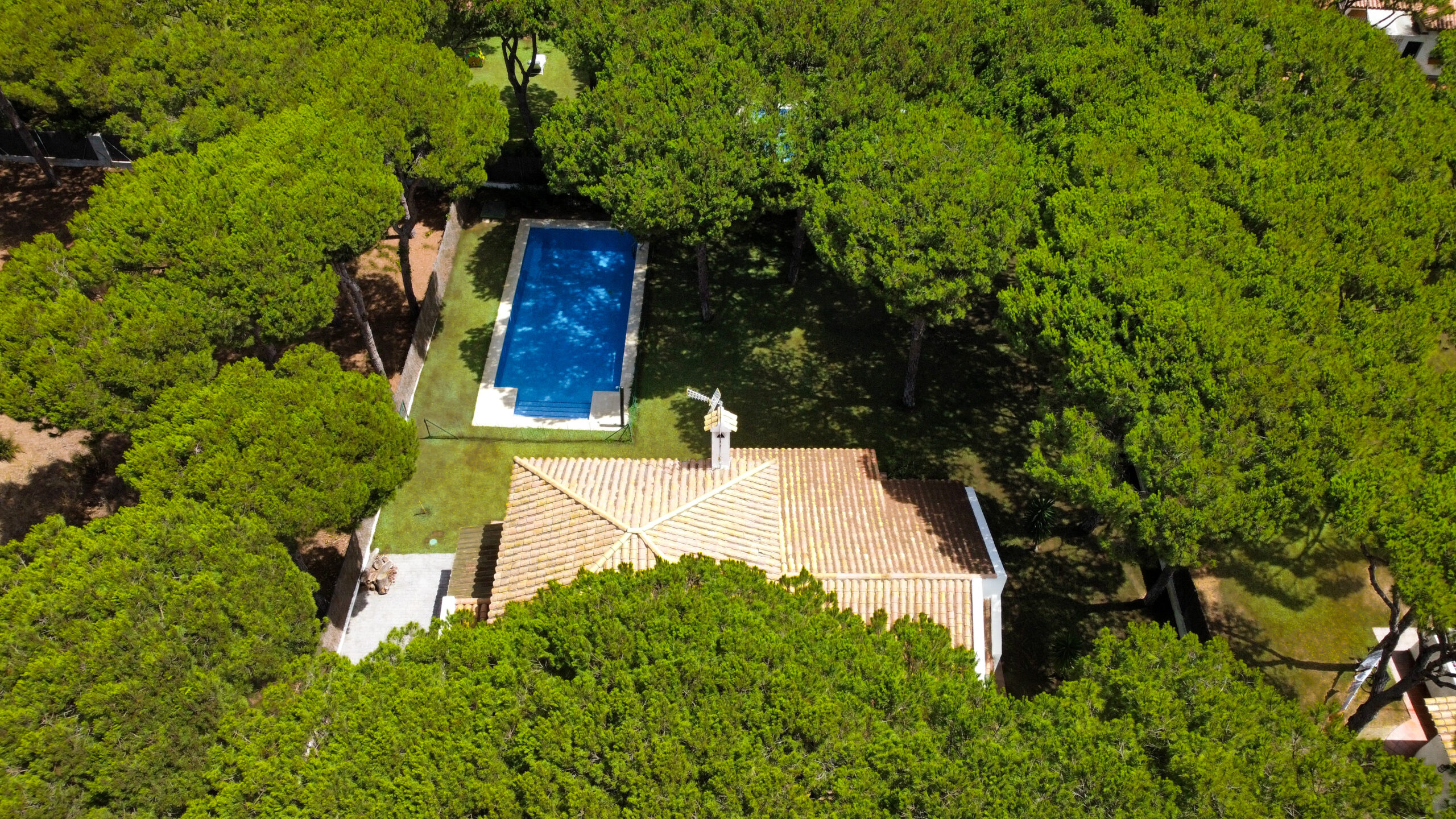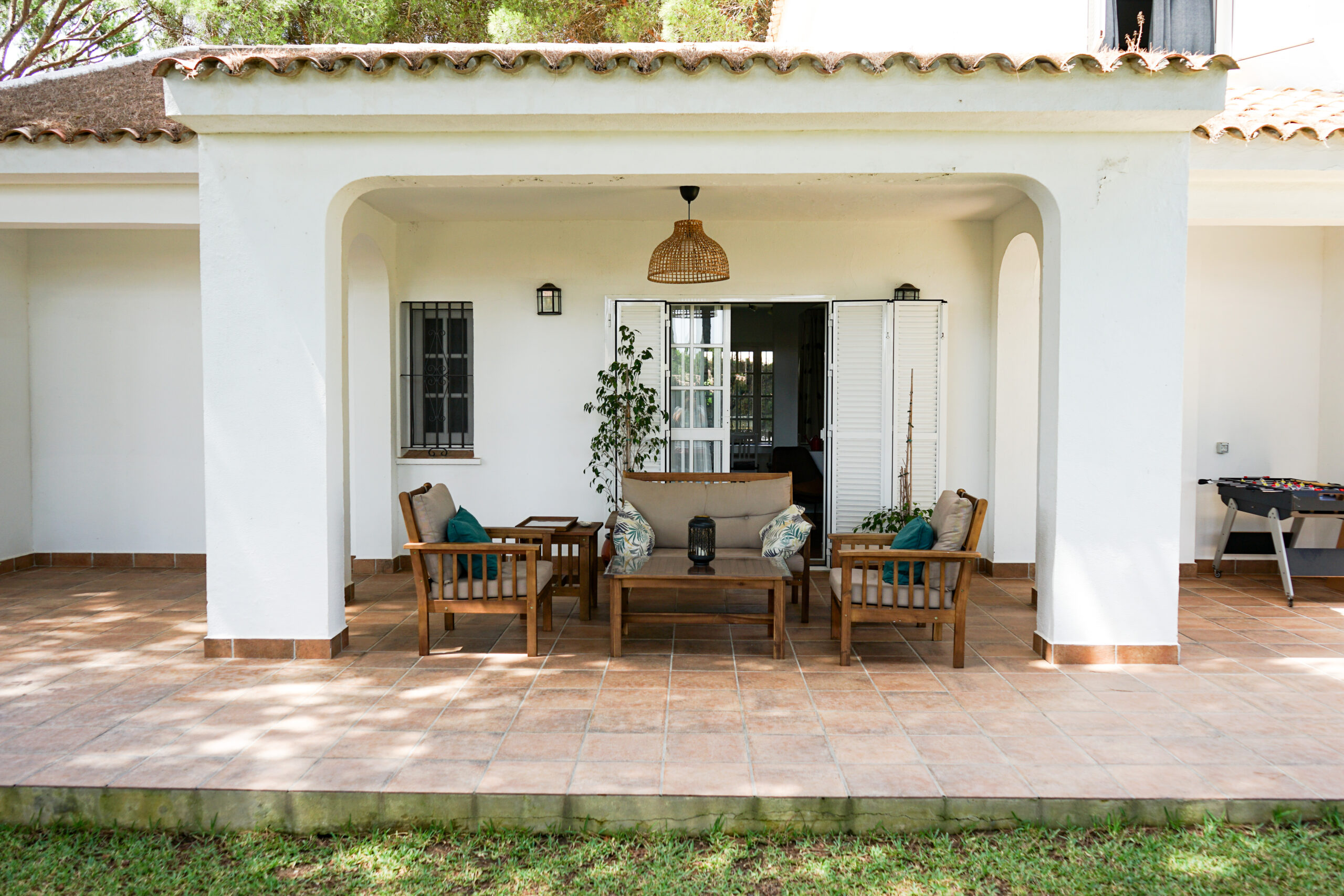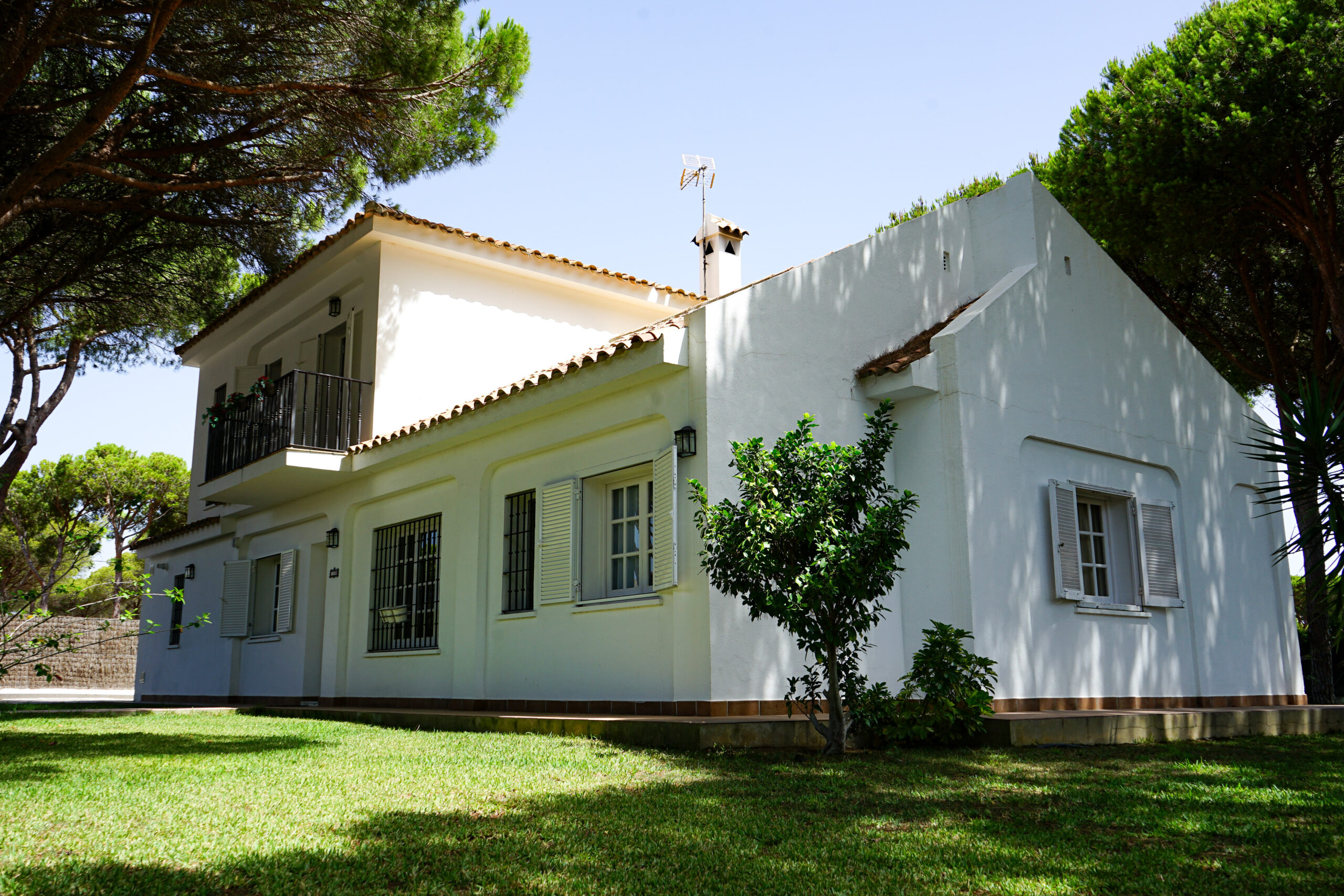 Villa/Chalet luminoso con piscina (190 m2 en 2 plantas y 1.050 m2 de parcela) en la urbanización Roche, Cádiz. A 5 min a pie de la playa. 5 dormitorios, 3 baños. Capacidad para 10 personas. Salón comedor, cocina completa. Jardín con piscina, hamacas y porche amueblado.