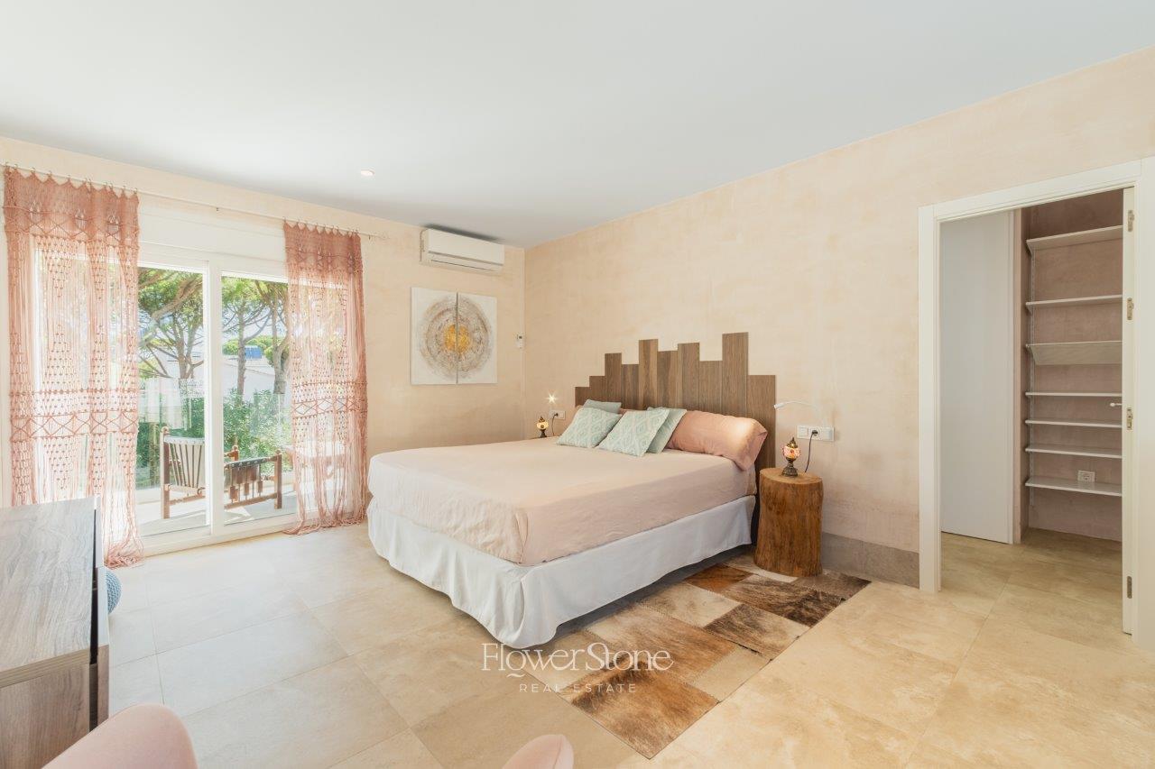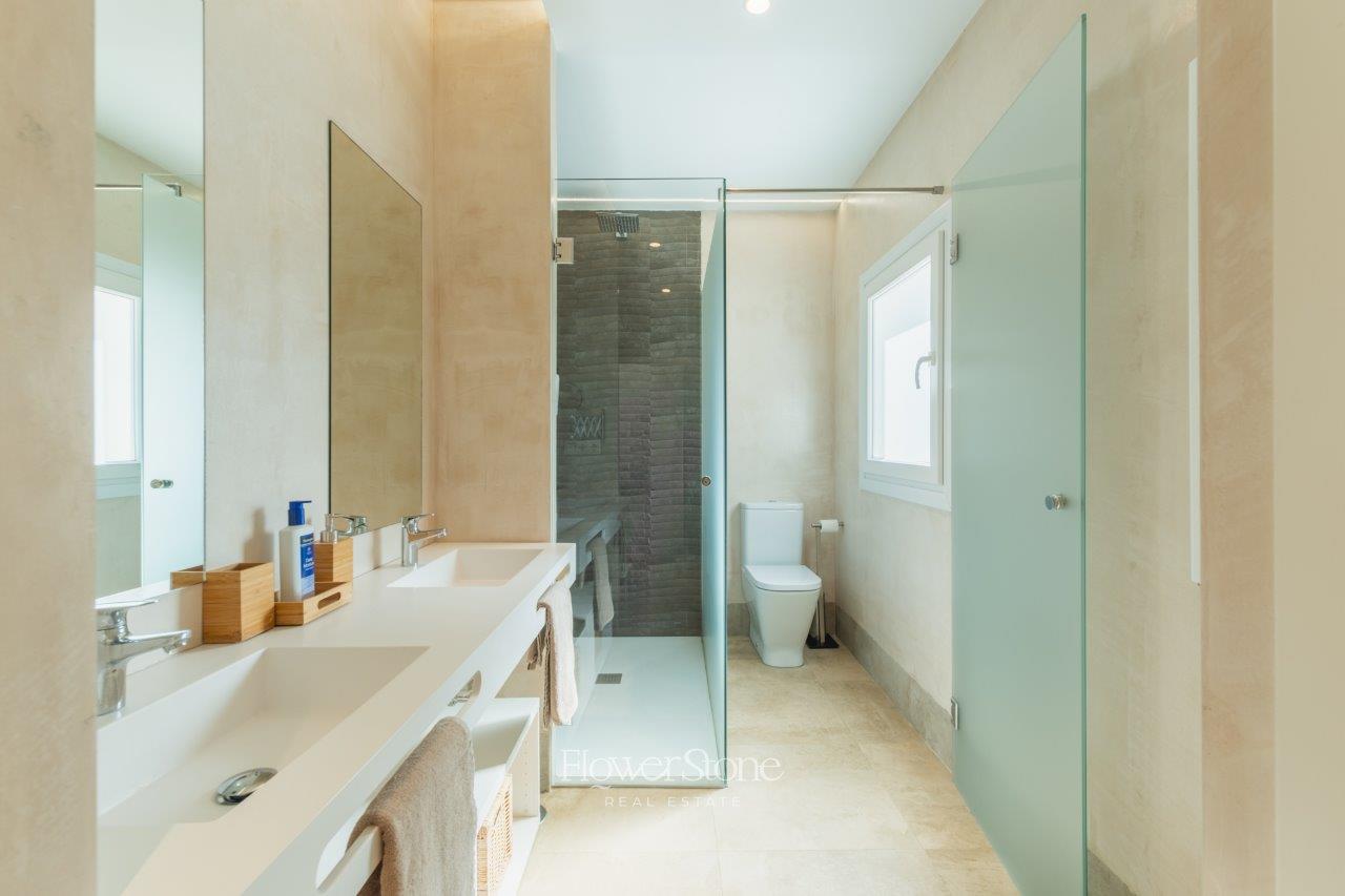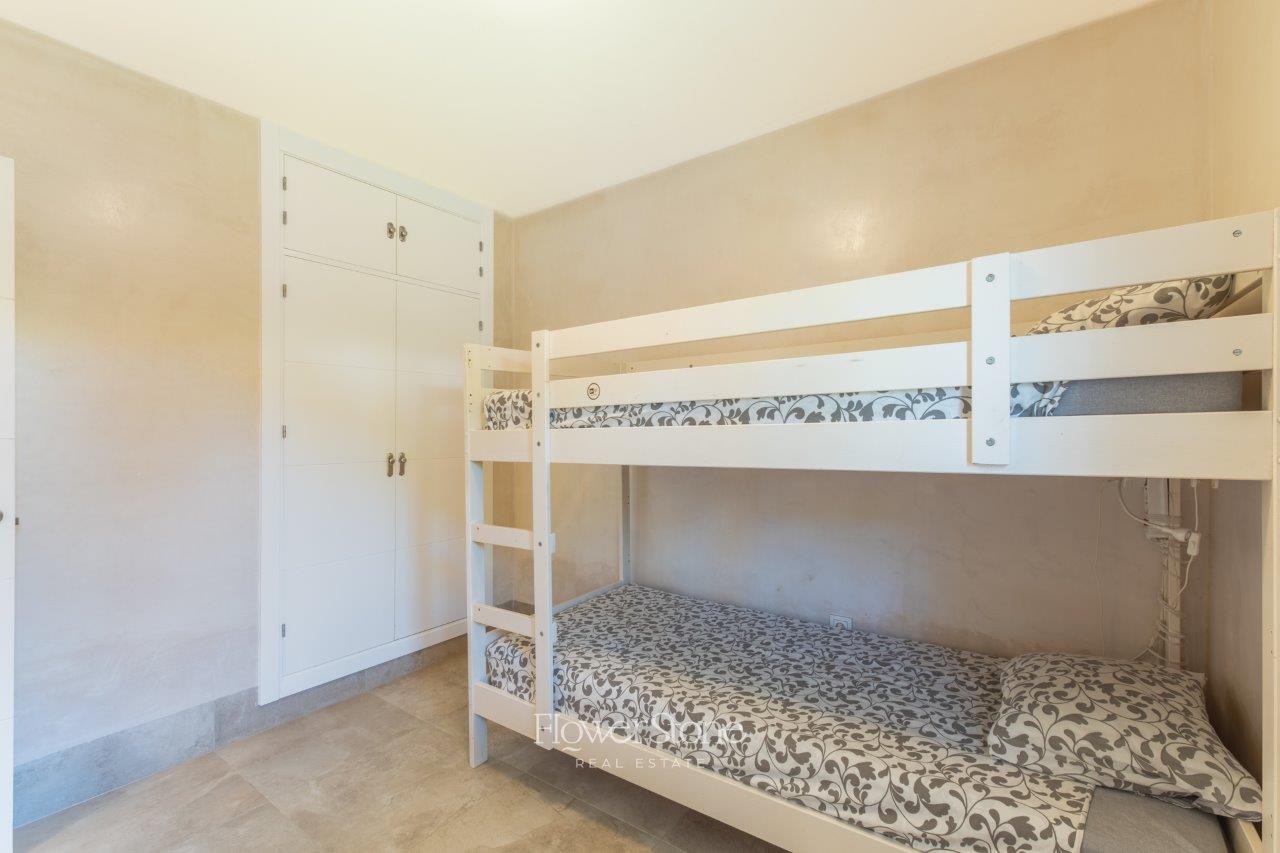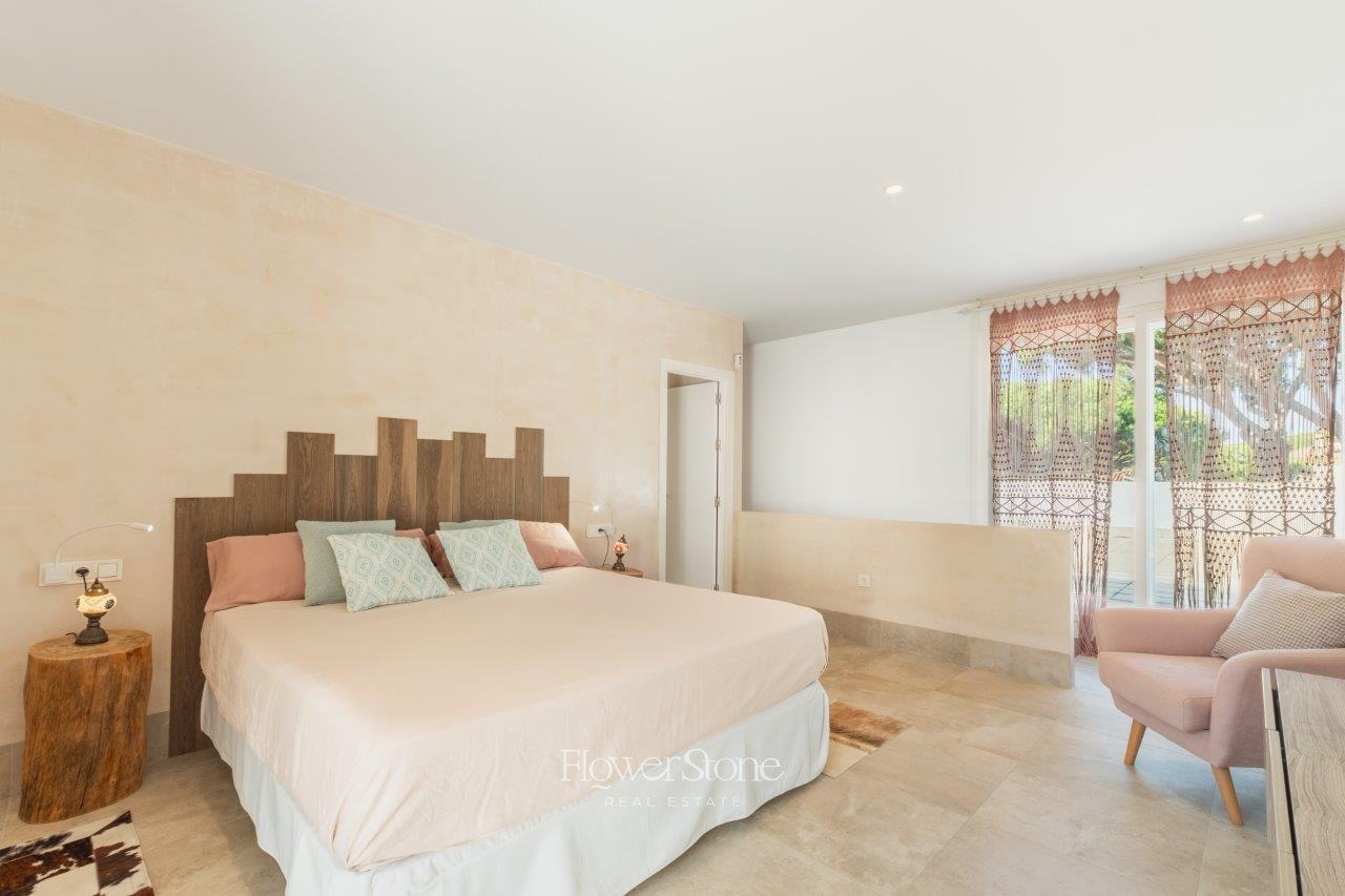 Con capacidad para 9 personas, la villa cuenta con 5 amplios dormitorios, 4 baños en el interior y uno exterior, todos equipados para garantizarte una estancia de ensueño. La cocina está completamente equipada, perfecta para preparar deliciosas comidas que podrás disfrutar en el amplio porche exterior, con su acogedora zona chill out y una barbacoa de obra para tus momentos más especiales. Además, la impresionante piscina de cloración salina, con cascada y ducha de agua caliente, será tu rincón favorito para relajarte bajo el sol.