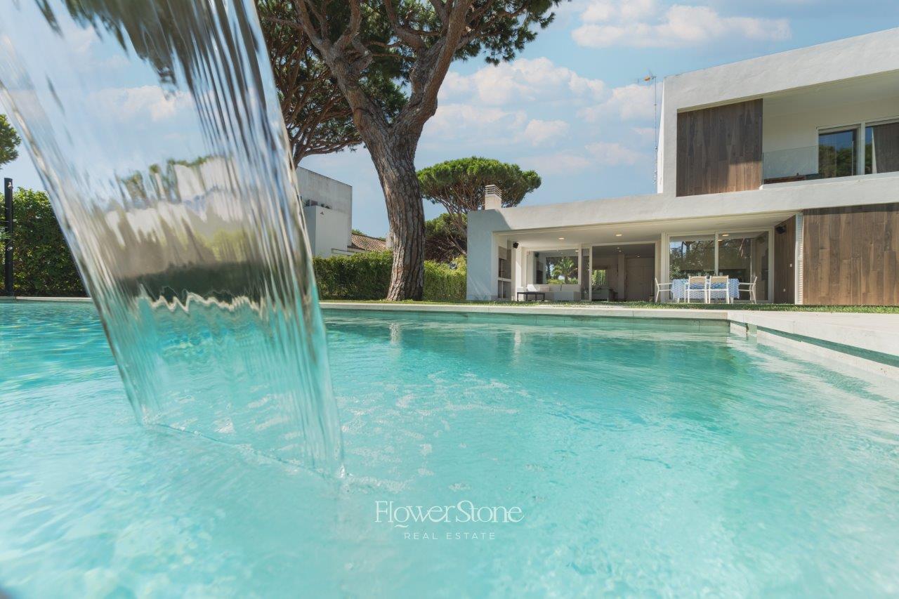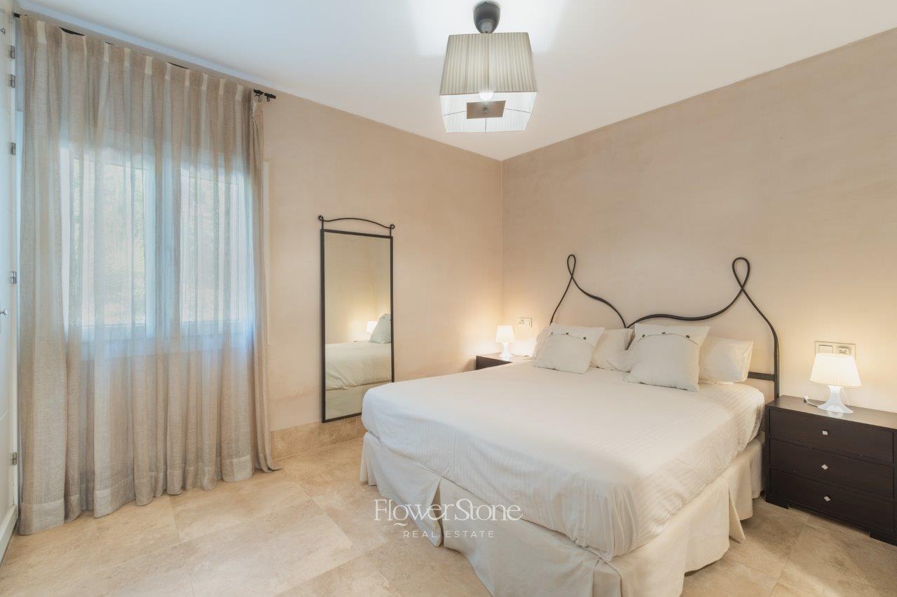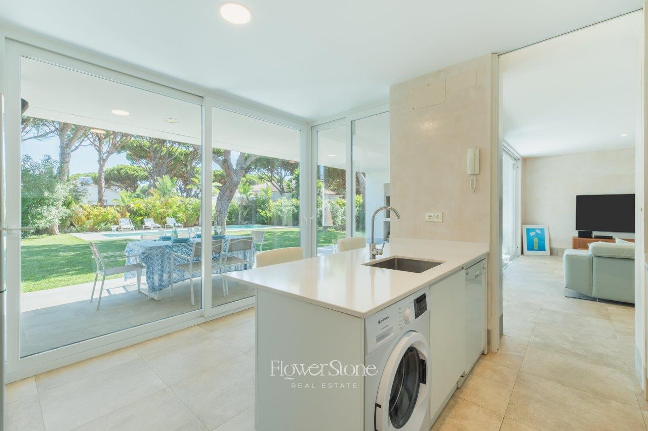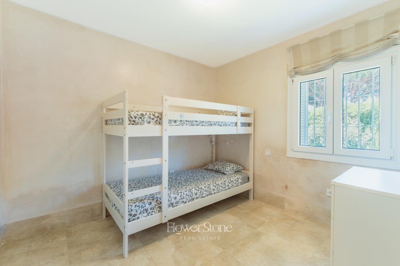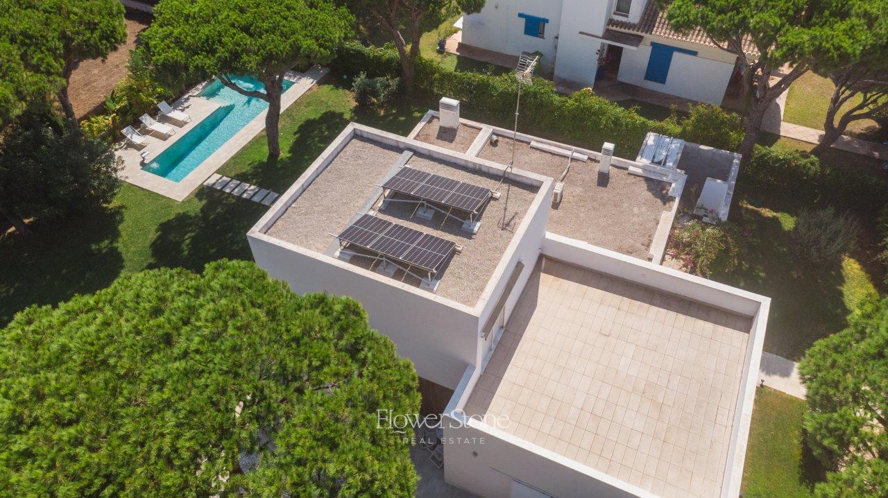 Con capacidad para 9 personas, la villa cuenta con 5 amplios dormitorios, 4 baños en el interior y uno exterior, todos equipados para garantizarte una estancia de ensueño. La cocina está completamente equipada, perfecta para preparar deliciosas comidas que podrás disfrutar en el amplio porche exterior, con su acogedora zona chill out y una barbacoa de obra para tus momentos más especiales. Además, la impresionante piscina de cloración salina, con cascada y ducha de agua caliente, será tu rincón favorito para relajarte bajo el sol.