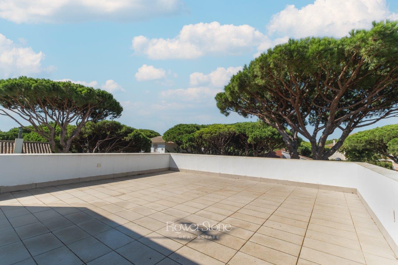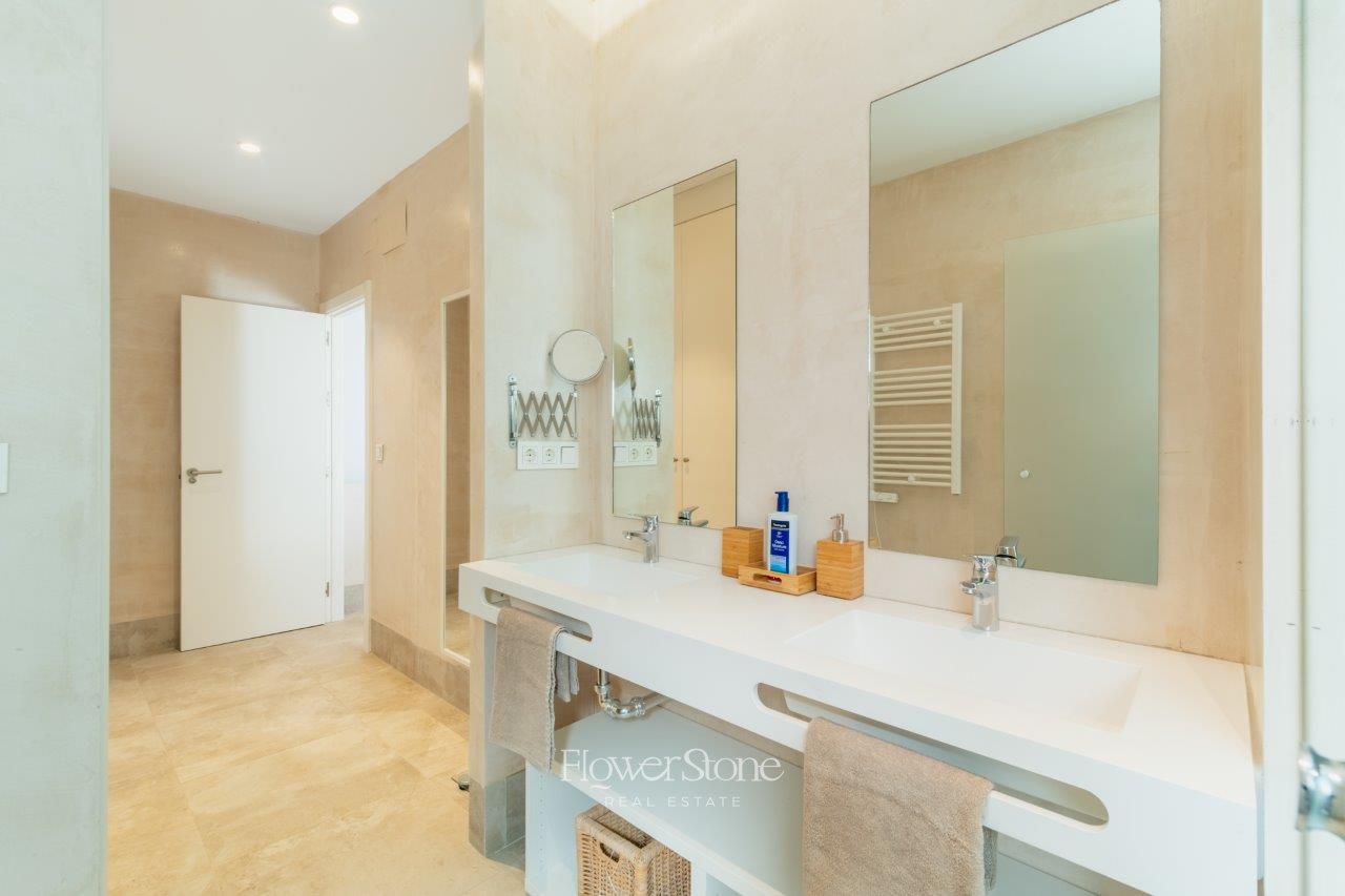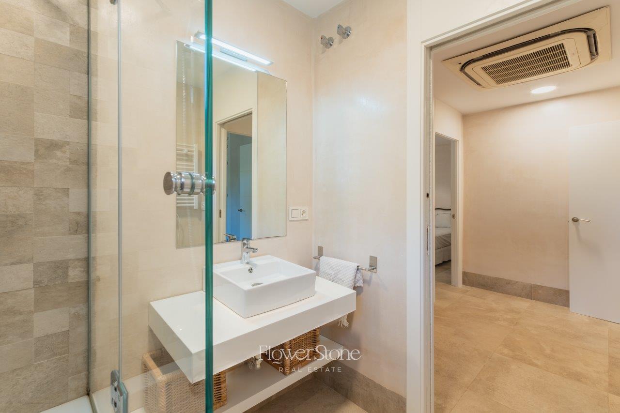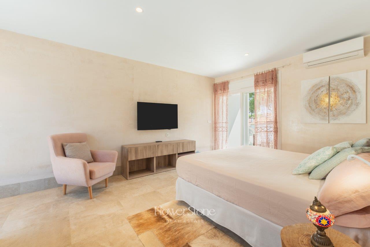 Con capacidad para 9 personas, la villa cuenta con 5 amplios dormitorios, 4 baños en el interior y uno exterior, todos equipados para garantizarte una estancia de ensueño. La cocina está completamente equipada, perfecta para preparar deliciosas comidas que podrás disfrutar en el amplio porche exterior, con su acogedora zona chill out y una barbacoa de obra para tus momentos más especiales. Además, la impresionante piscina de cloración salina, con cascada y ducha de agua caliente, será tu rincón favorito para relajarte bajo el sol.
