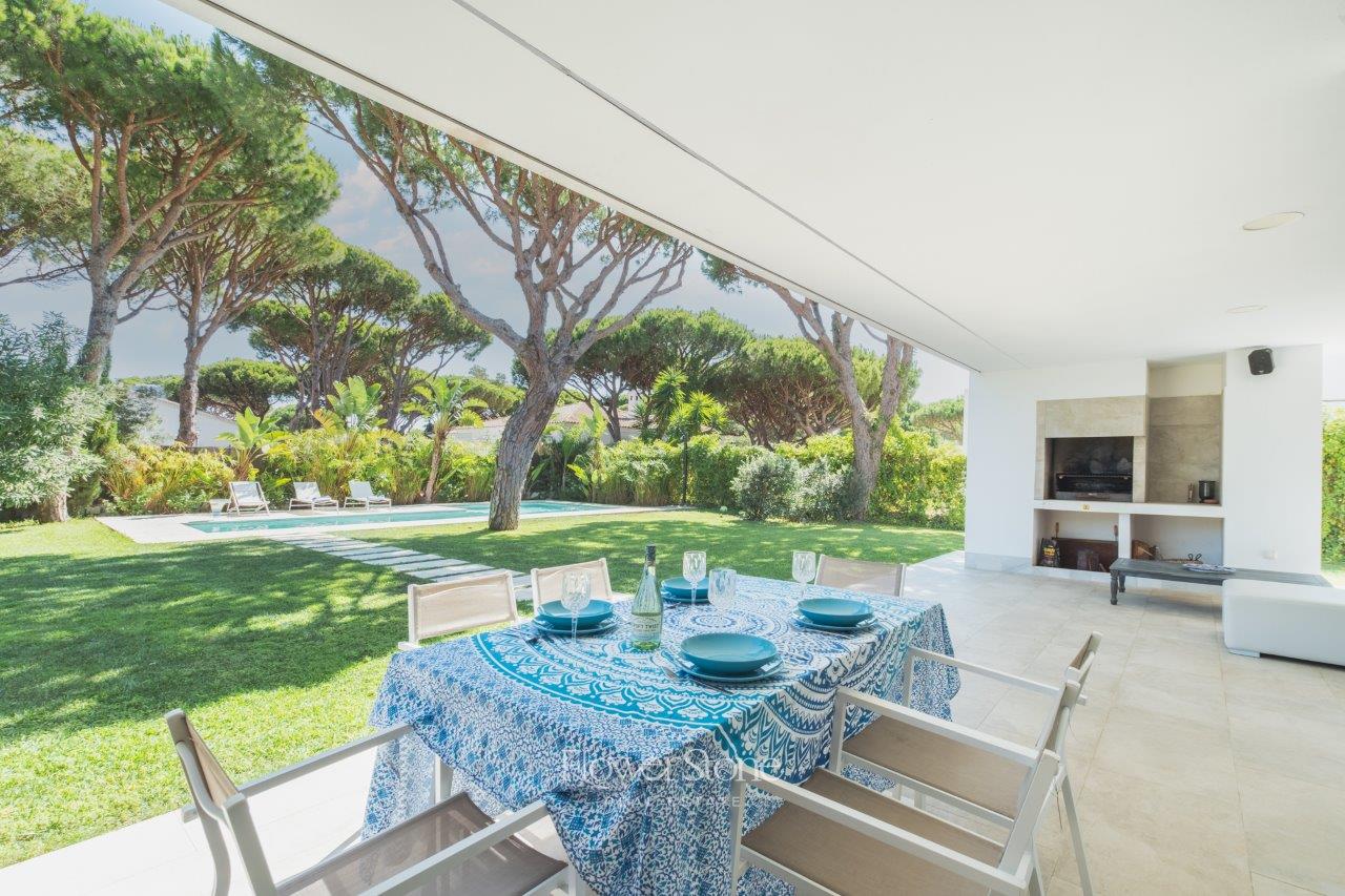 Desde su terraza con vistas al precioso jardín, hasta el salón con chimenea, cada rincón de Villa América II está diseñado para ofrecerte el máximo relax. Disfruta de momentos únicos en familia, caminando por la playa, calas o pinares que rodean Roche, también si lo prefieres, practicando deportes en las instalaciones de la urbanización de pádel, tenis, fútbol y surf, o a 10 min de Roche, golf.